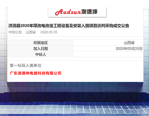 廣東澳德紳電器科技有限公司入圍山西洪洞縣2020年“煤改電”項目!